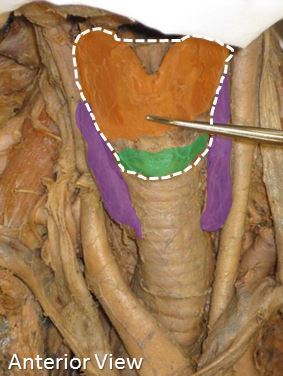 The orange part is the _____, the green part is the _____, the purple lobe is the _____