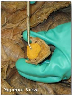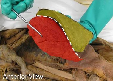 The orange part of the organ is the _____ and the green part of the organ is the _____