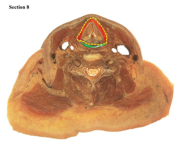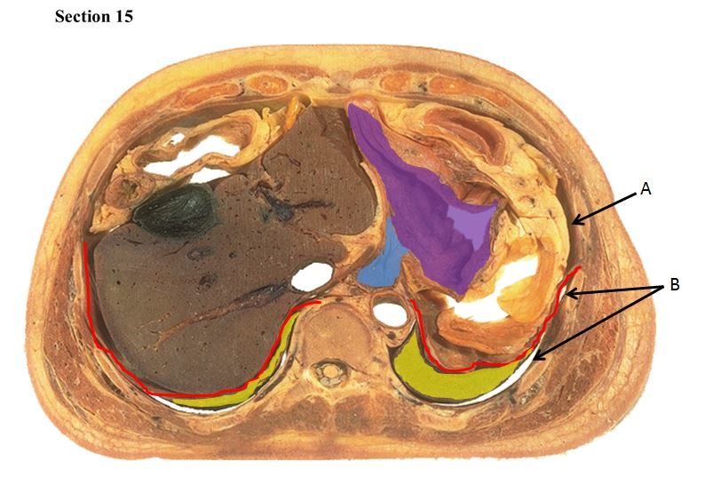 The red line is a muscle called the ___ which separates cavity A called the ___ from cavity B which is called the ___