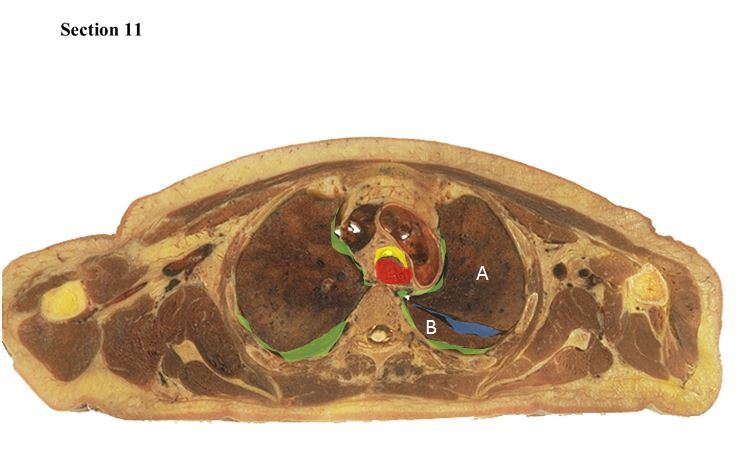 The blue space is the _____ and it separates structure A which is the _____ of the lung from structure B which is the _____ of the lung.
