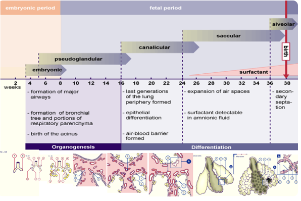 in all species lung development will contine post natally (in litter baring species, this may be a relatively long time