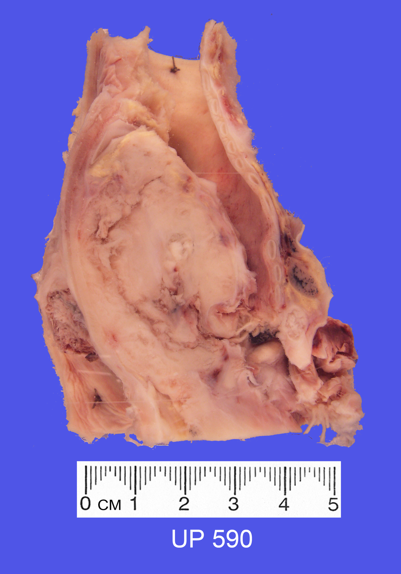 Appears to be spreading into the oesophagus, posteriorly.