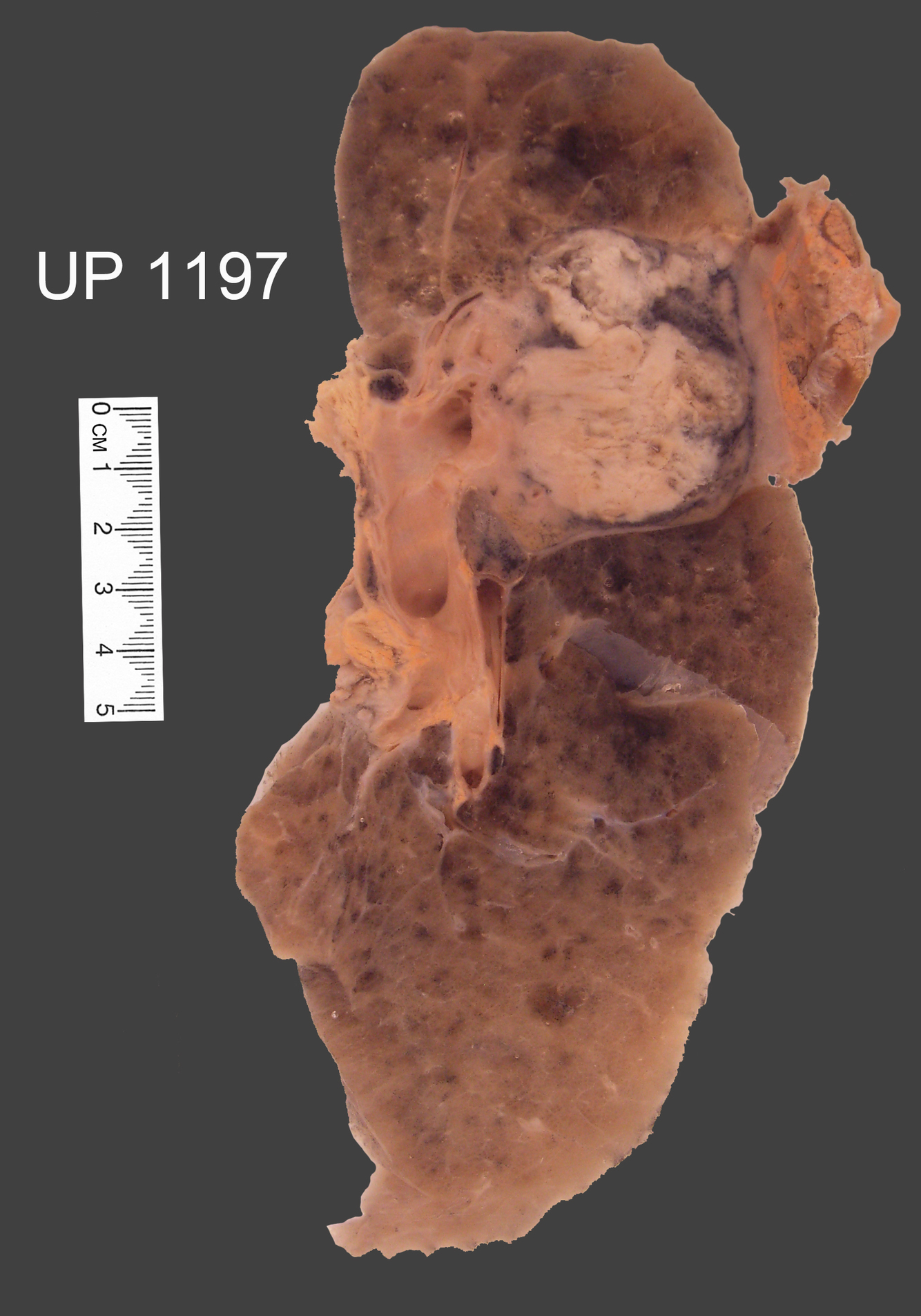 Specimen shows a section through the R lower lobe.