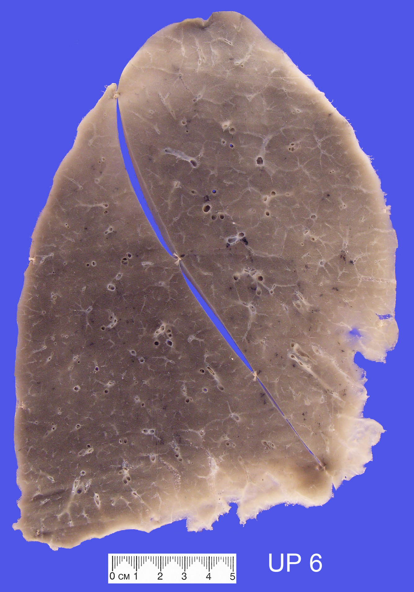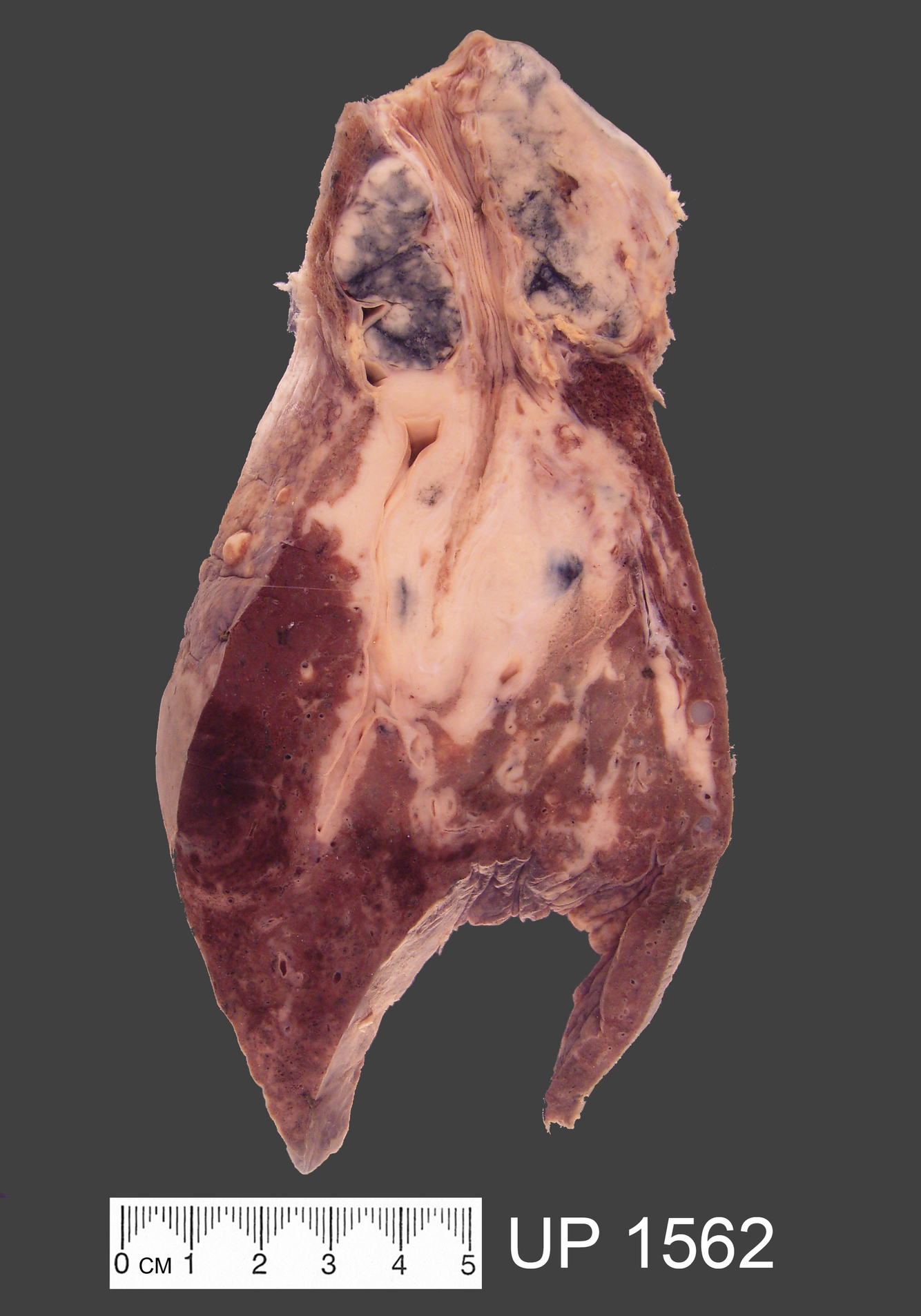 The specimen shows a slice through the left lung, showing both upper and lower lobes.