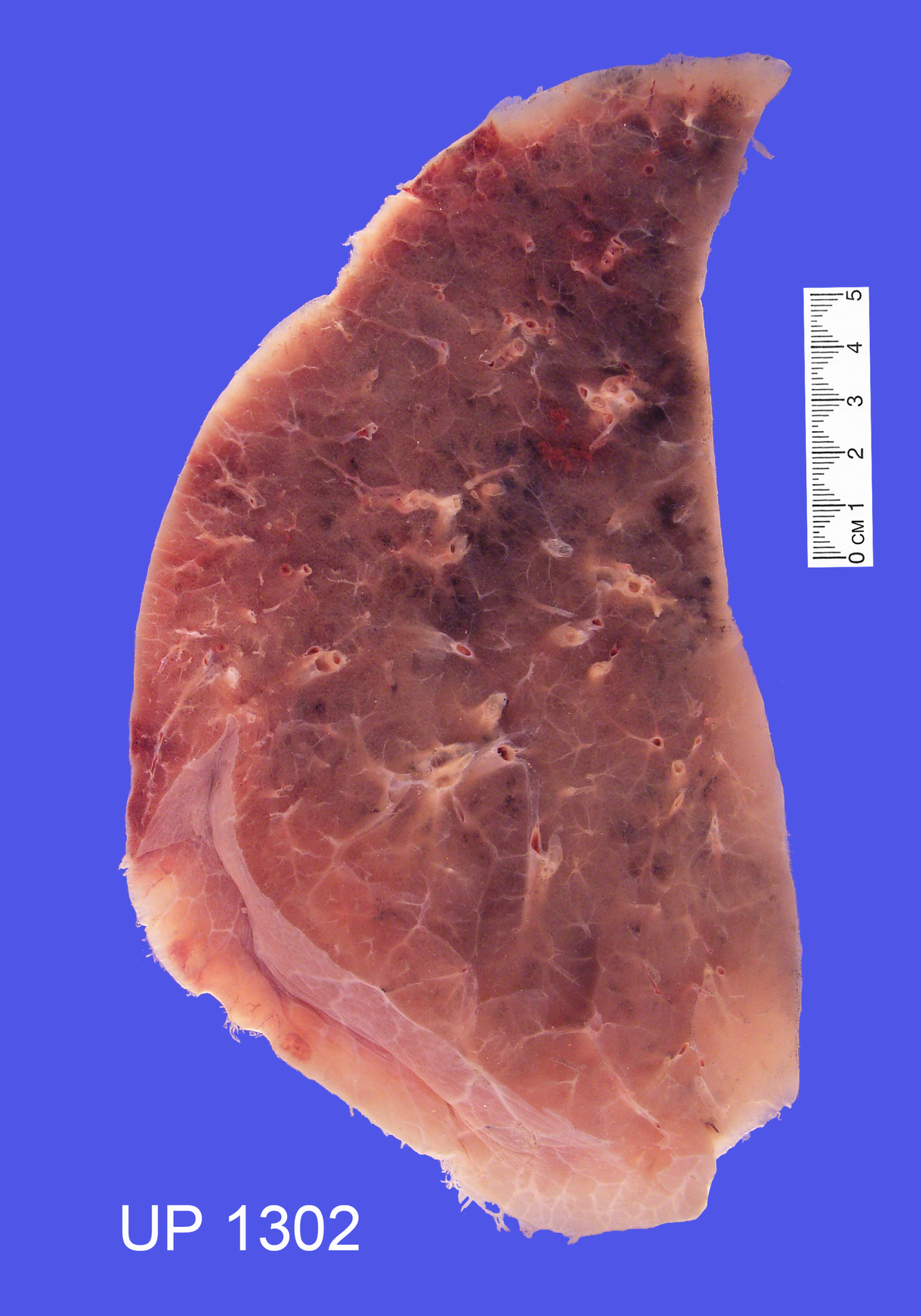 The remainder of the lung parenchyma shows consolidation - confluent broncho-pneumonia