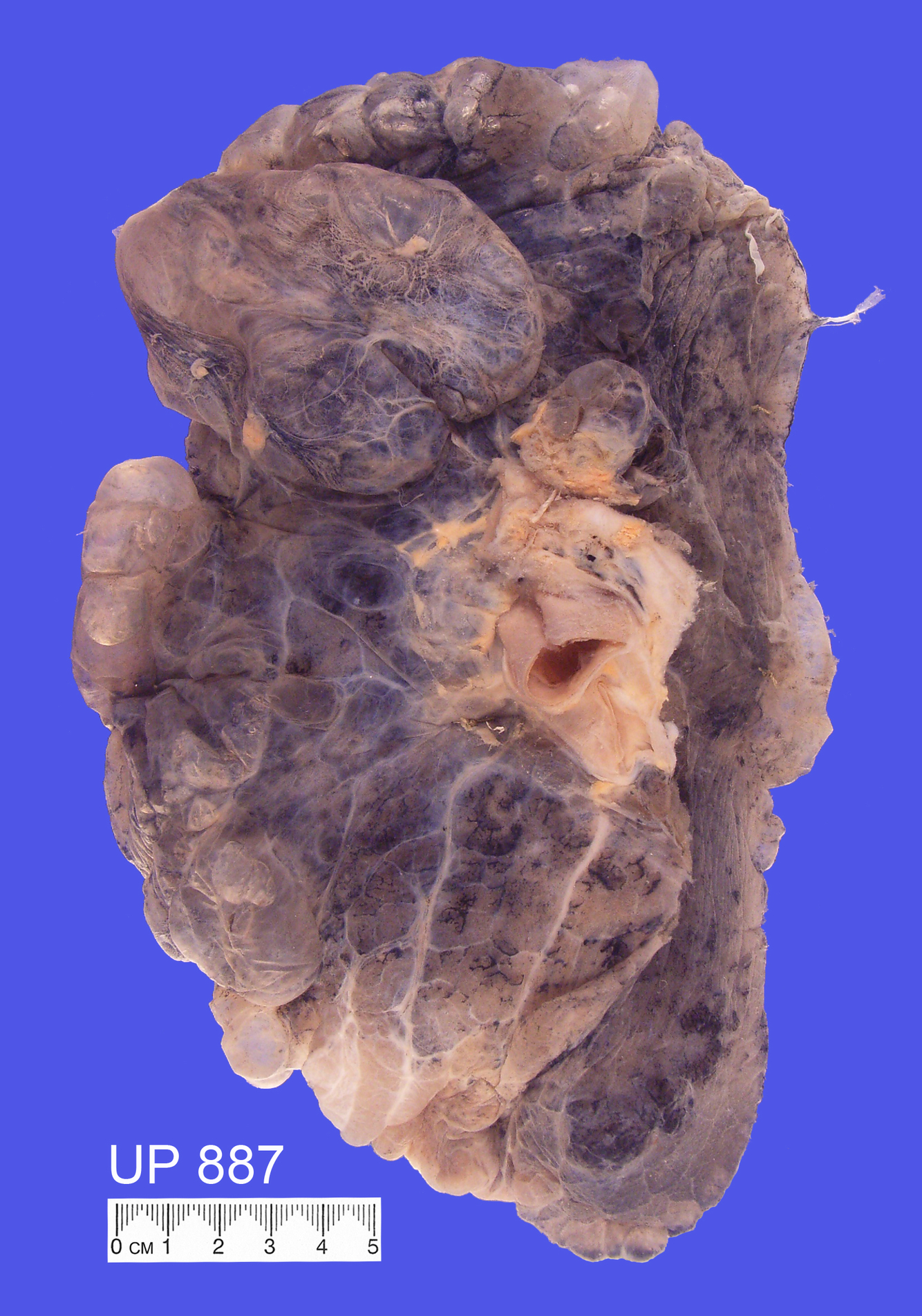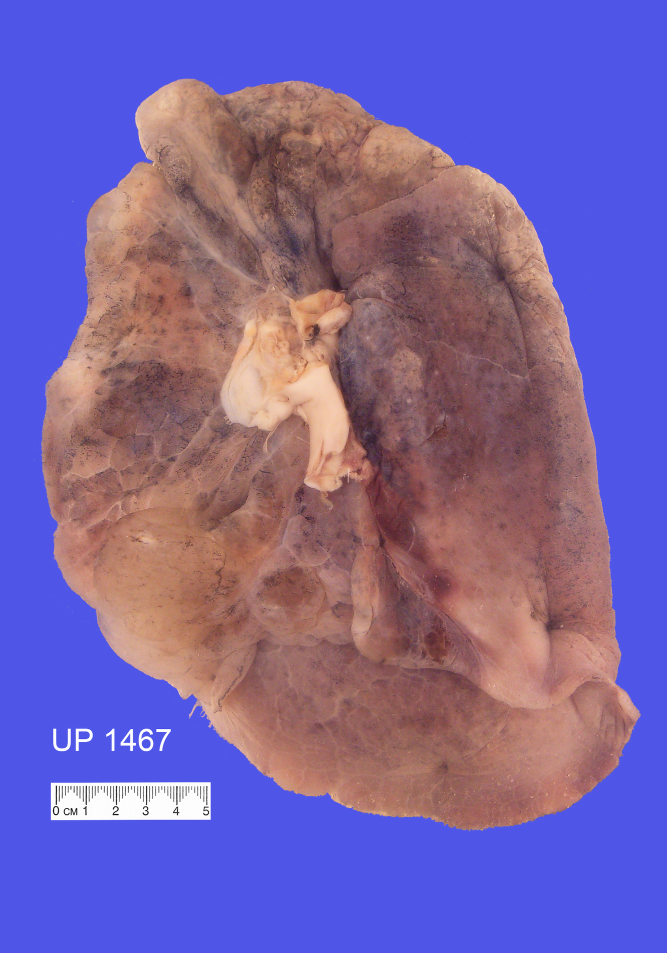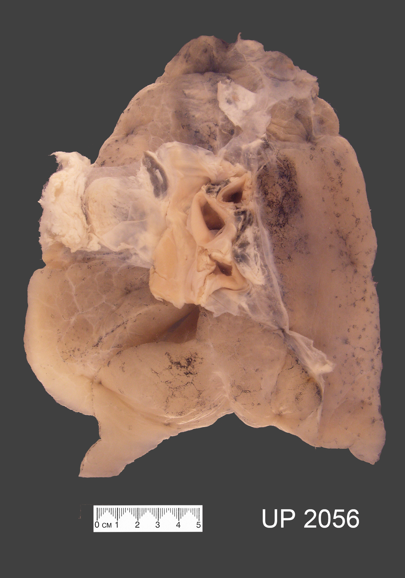 Mounted specimen shows an inflated left lung
