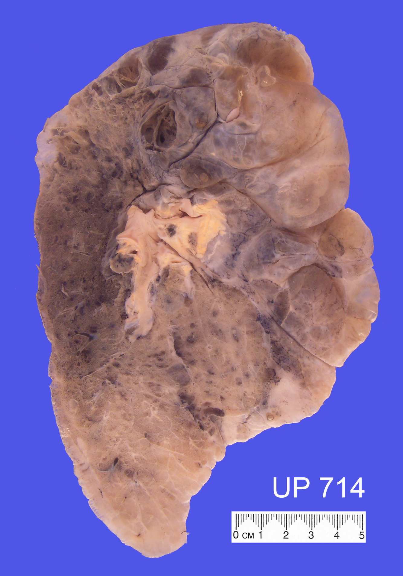The specimen shows a longitudinal section of lung.