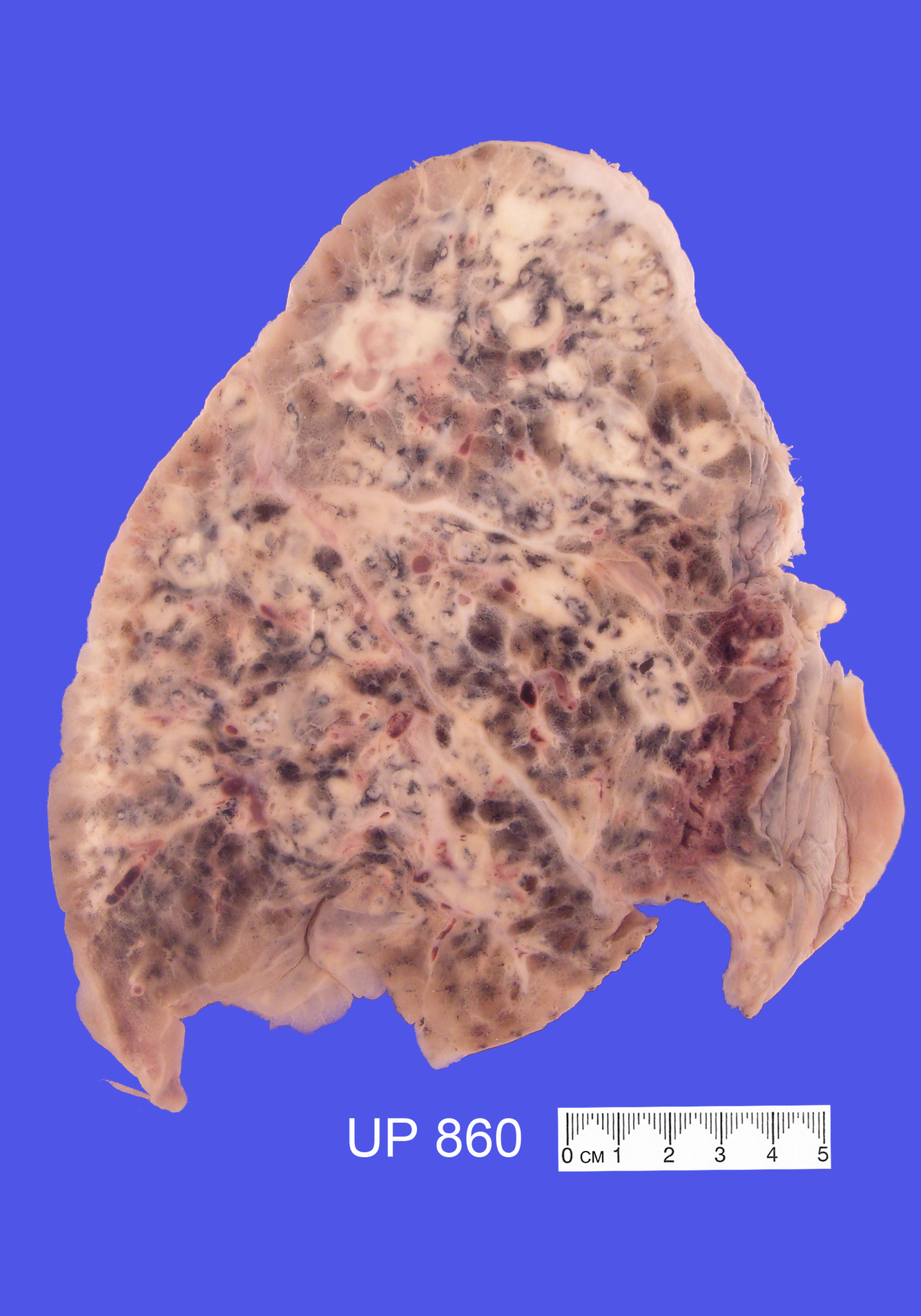 There is carbon staining throughout the lung.