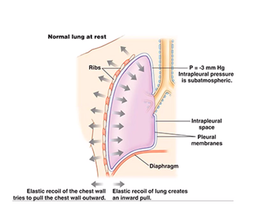 intrapleural pressure: returns to inital value as chest wall recoils