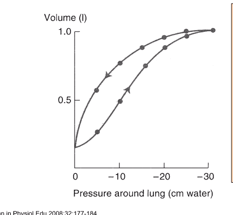 at any given pressure, lung vol during inhalation is bigger or small c.f exhalation?
