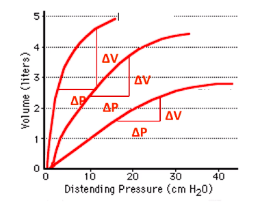 compliance = change in volume / change in pressure