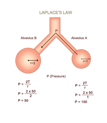 where P = pressure within bubble, T = surface tension & r = radius