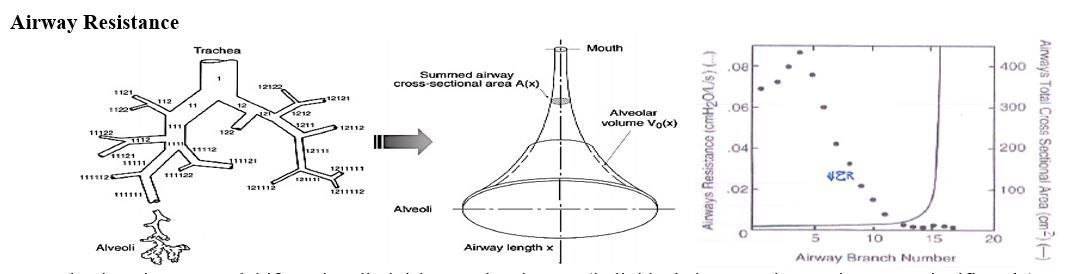 In conducting airways, each bifurcation diminishes total resistance (individual airway resistance increases significantly).