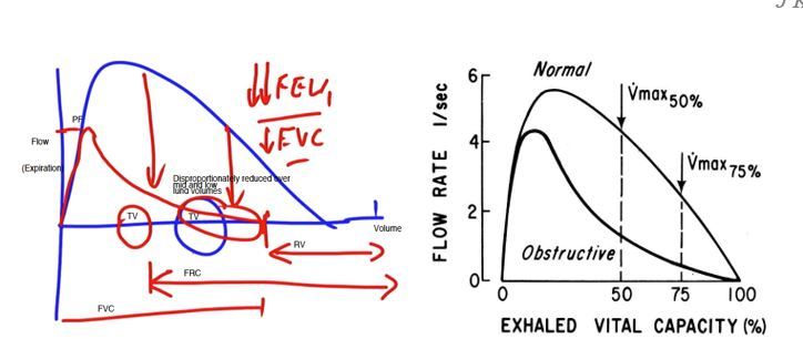 * Obstructive lung disease is when there is reduced flow at all lung volumes (including peak flow), but flow is disproportionately reduced over mid and low lung volumes, which indicates disease in small airways.*