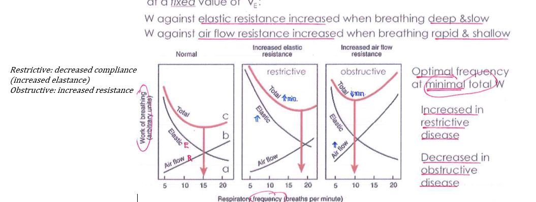 Because, at fixed work-load, both R and C (E-1) vary with respiratory frequency, work of breathing also varies: