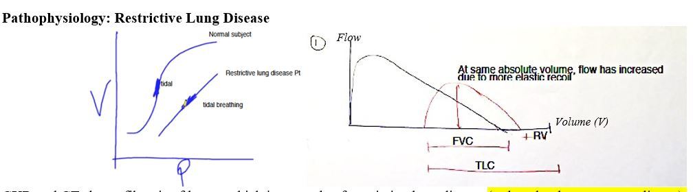 For restrictive lung disease, they have decreased compliance (flatter gradient):