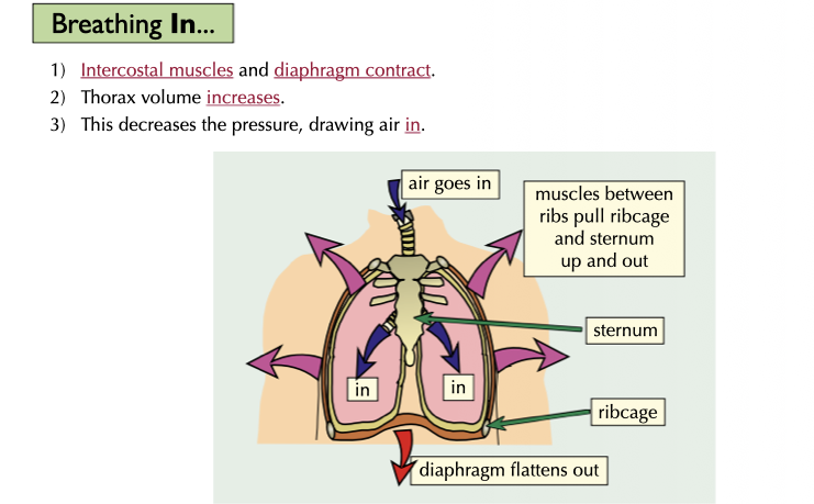 Intercoastal muscles and diaphragm contract
