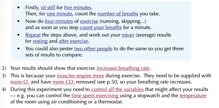 describe an experiment on the effect of exercise on breathing rate?