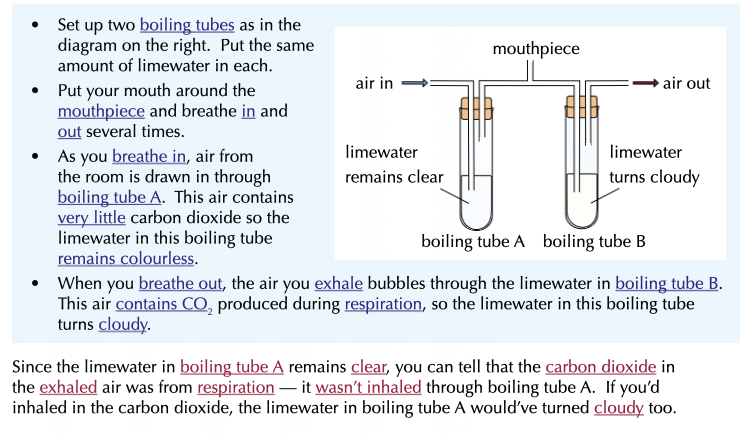 Describe an experiment proving the release of Carbon dioxide in your breath?