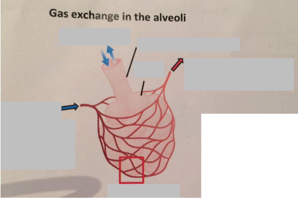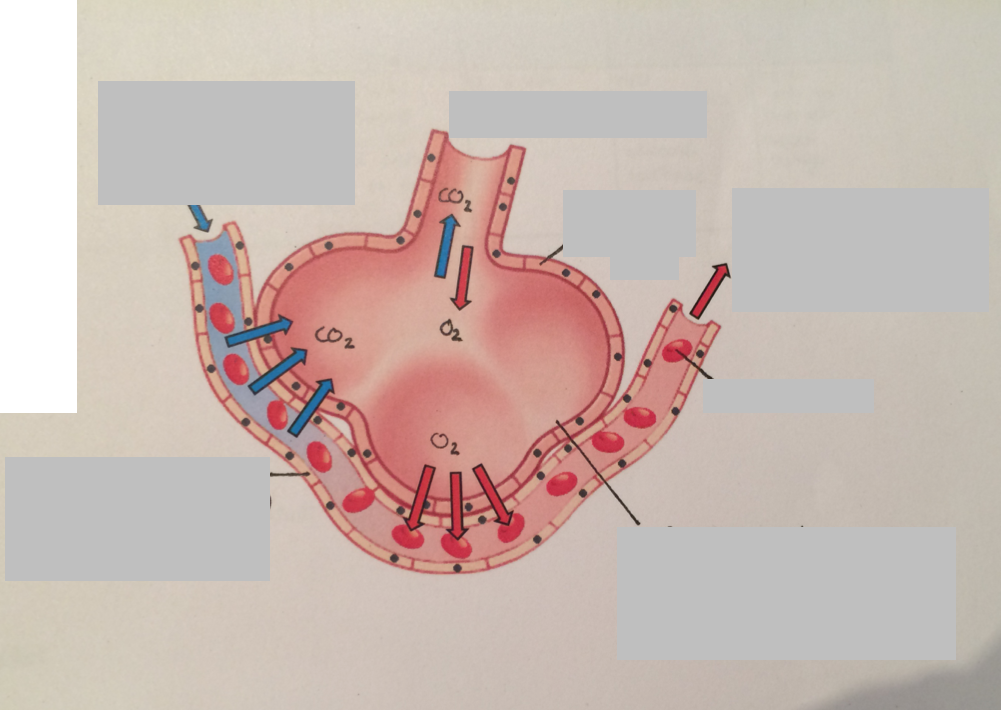 Label this gas exchange in the alveoli diagram