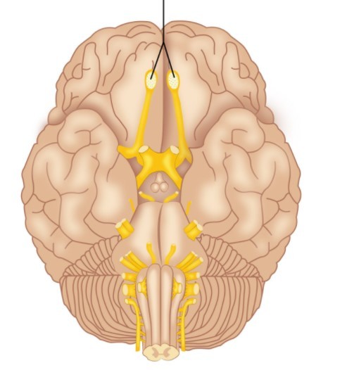 first cranial nerve and conveys special sensory information related to smell. It is the shortest of the cranial nerves and passes from its receptors in the nasal mucosa to the forebrain. It enters the skull through the cribriform plate of the ethmoid bone.