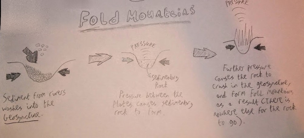 Describe with diagrams how fold mountains form.