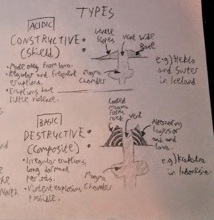 Draw diagrams and compare Shield and Composite volcanoes.