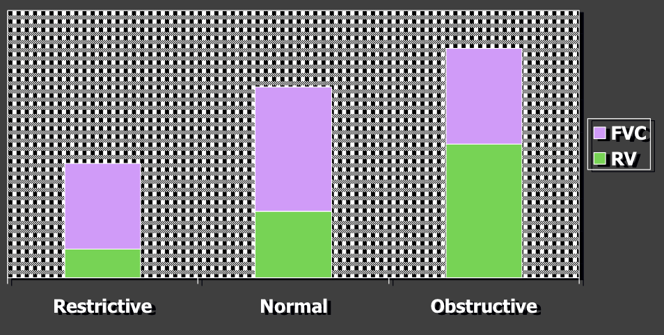 •V/Q mismatchingis the predominant problem at rest because you havereduced surface areain the alveoli and theTLC is markely reduced.Oxygen at rest still has plenty of time to diffuse through because we created enough damage to move the diffusion time from 0.25 to 0.75 sec.
