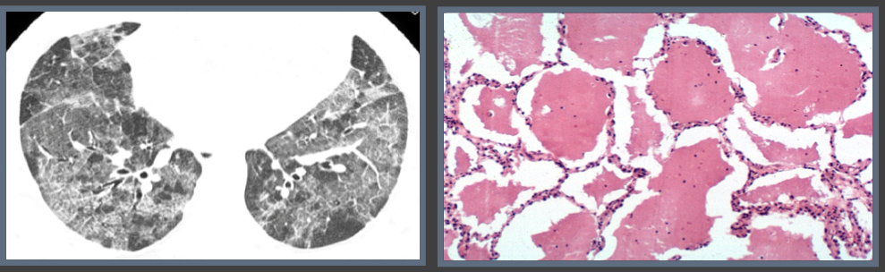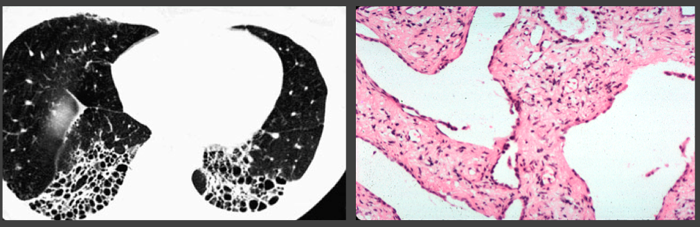In early stages the lung has a ground glass appearance, this indicates that the disease is reversible. Progression into the intermediate stages means you’ll see Reticulation/nodulation on the CT. You can hope for some improvement, but lung function will not be restored. Honeycombing is the end stage and all you can do it try to prevent the progression.