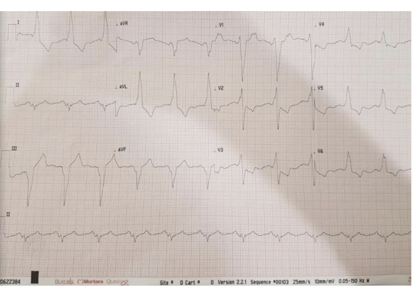 left axis deviation, LBBB with positive modified sgarbossa criteria