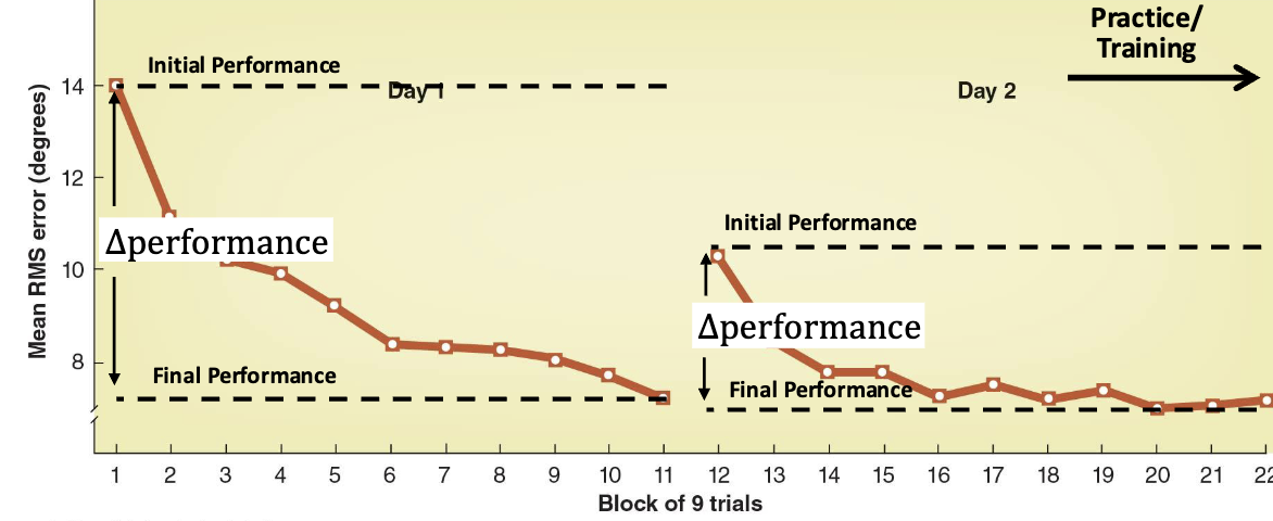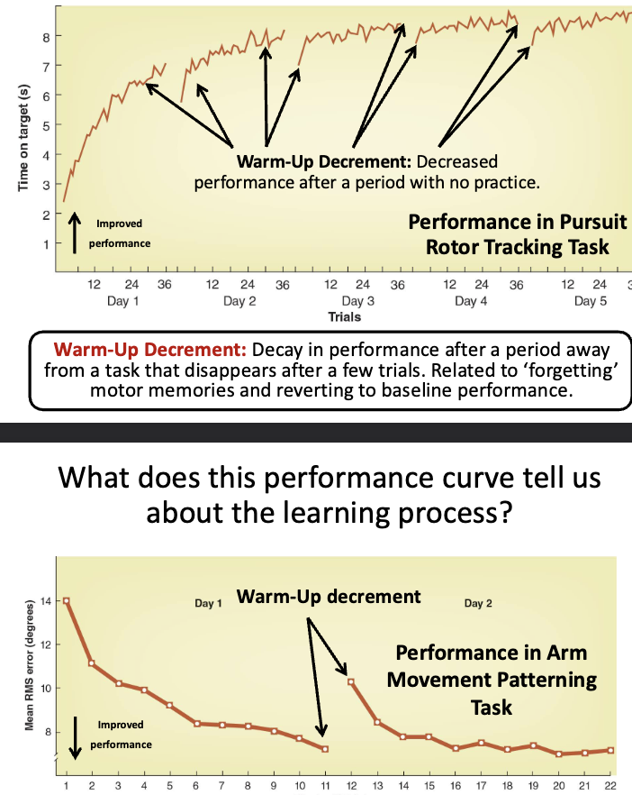 Decay in performance after a period away from a task that disappears after a few trials. Related to ‘forgetting’ motor memories and reverting to baseline performance