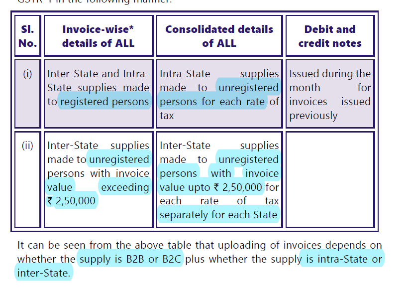 Are there any distinctions made when it comes to filing GSTR -1 when the supply is made to a B2B or B2C? when invoice wise details has to be given? when giving consolidated details in the GSTR 1 is enough?