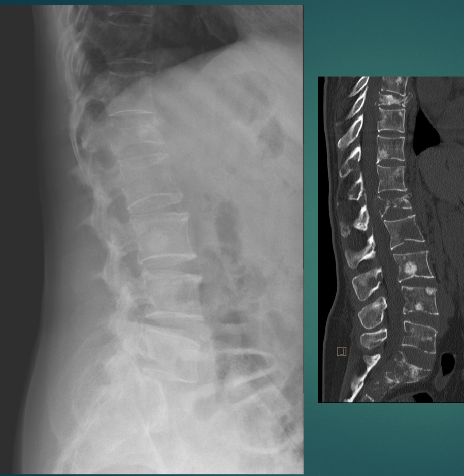 60 YO F. Low back pain. Progressively worse over the last several months.