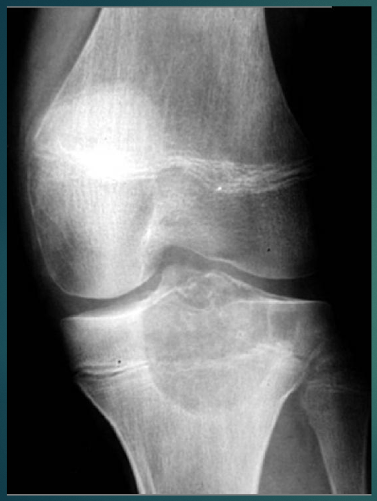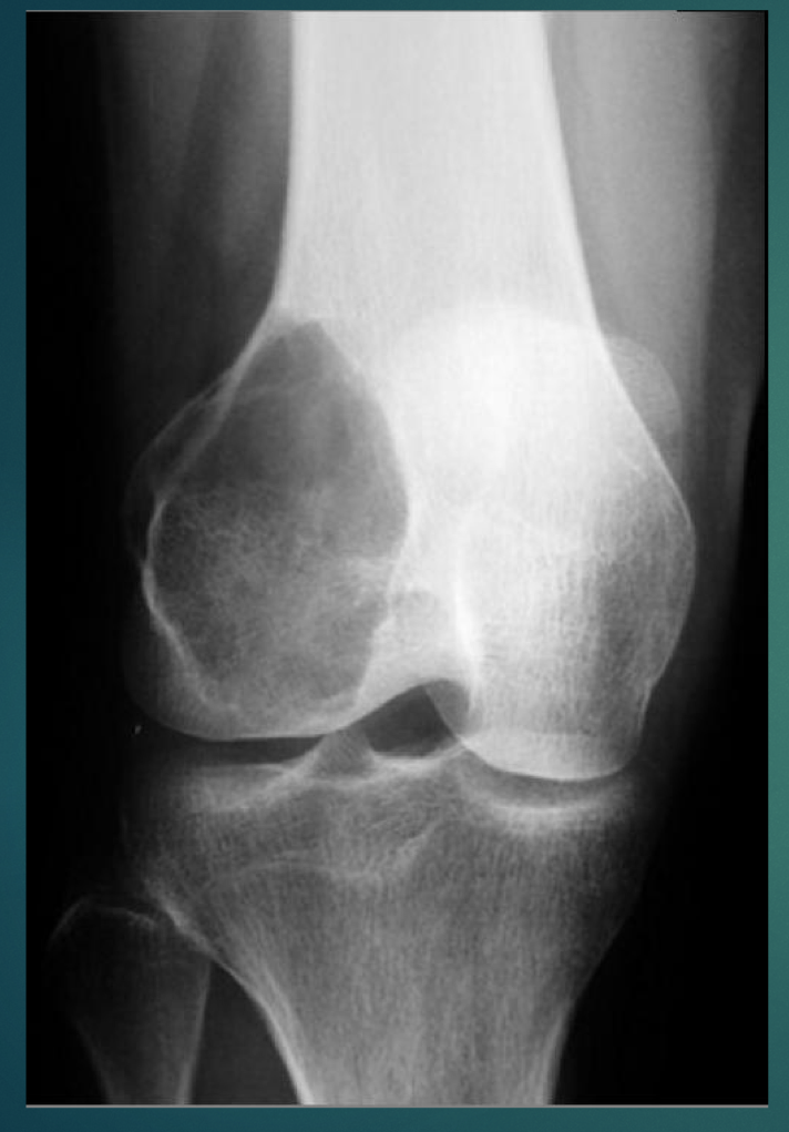 Think: Chondroblastoma (opposite of GCT. Chondroblastoma will cross open growth plates.)