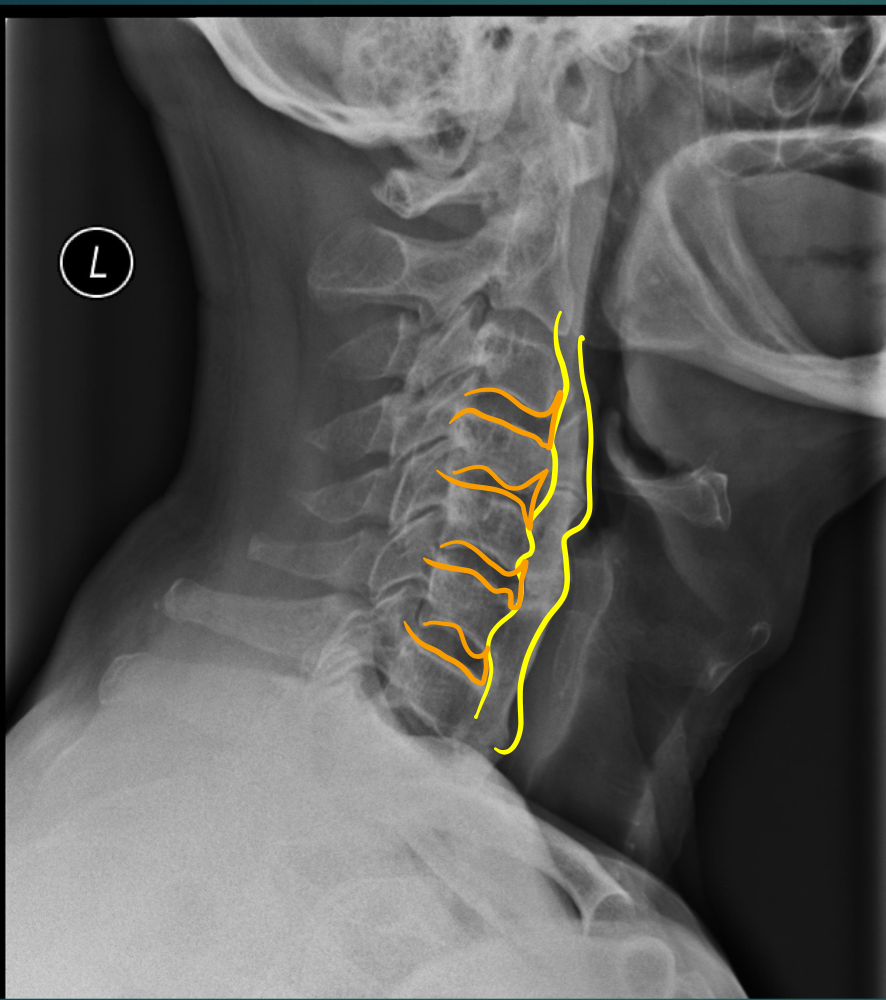 • Acute kyphosis at the 2 segments (might look like retrolisthesis)