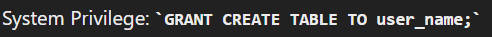 GRANT CREATE SESSION, CREATE TABLE TO user_name;
