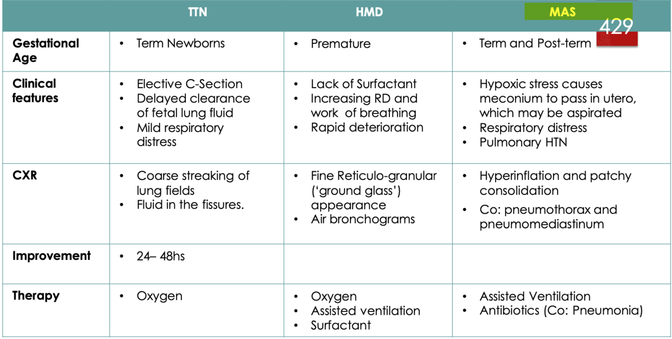 Neonatal Respiratory Distress DIFFERENTIALS
