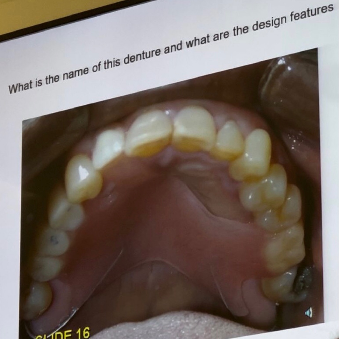 Name of the denture and it’s design features?