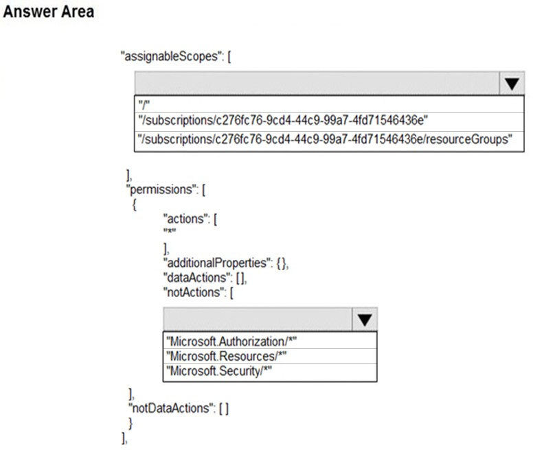 What would you create a custom RBAC role which does everything except admin of access permissions and is only applicatble to resourceGroups of a specific subscription?