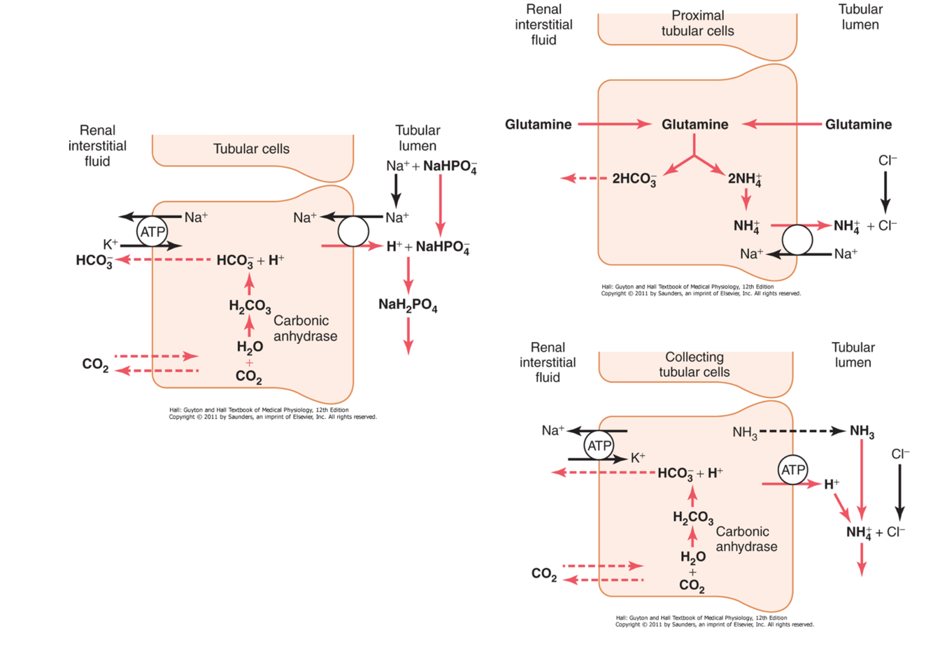 However this is not sufficient on its own so you need: URINARY BUFFERS- as both below processes occur HCO3- is made and being added to blood