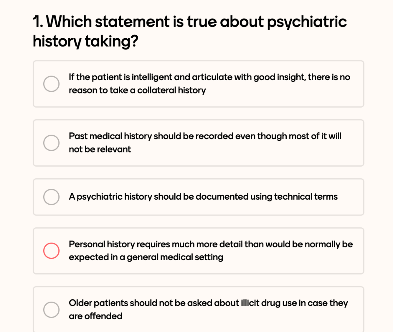 Personal history requires much more detail than would be normally be expected in a general medical setting