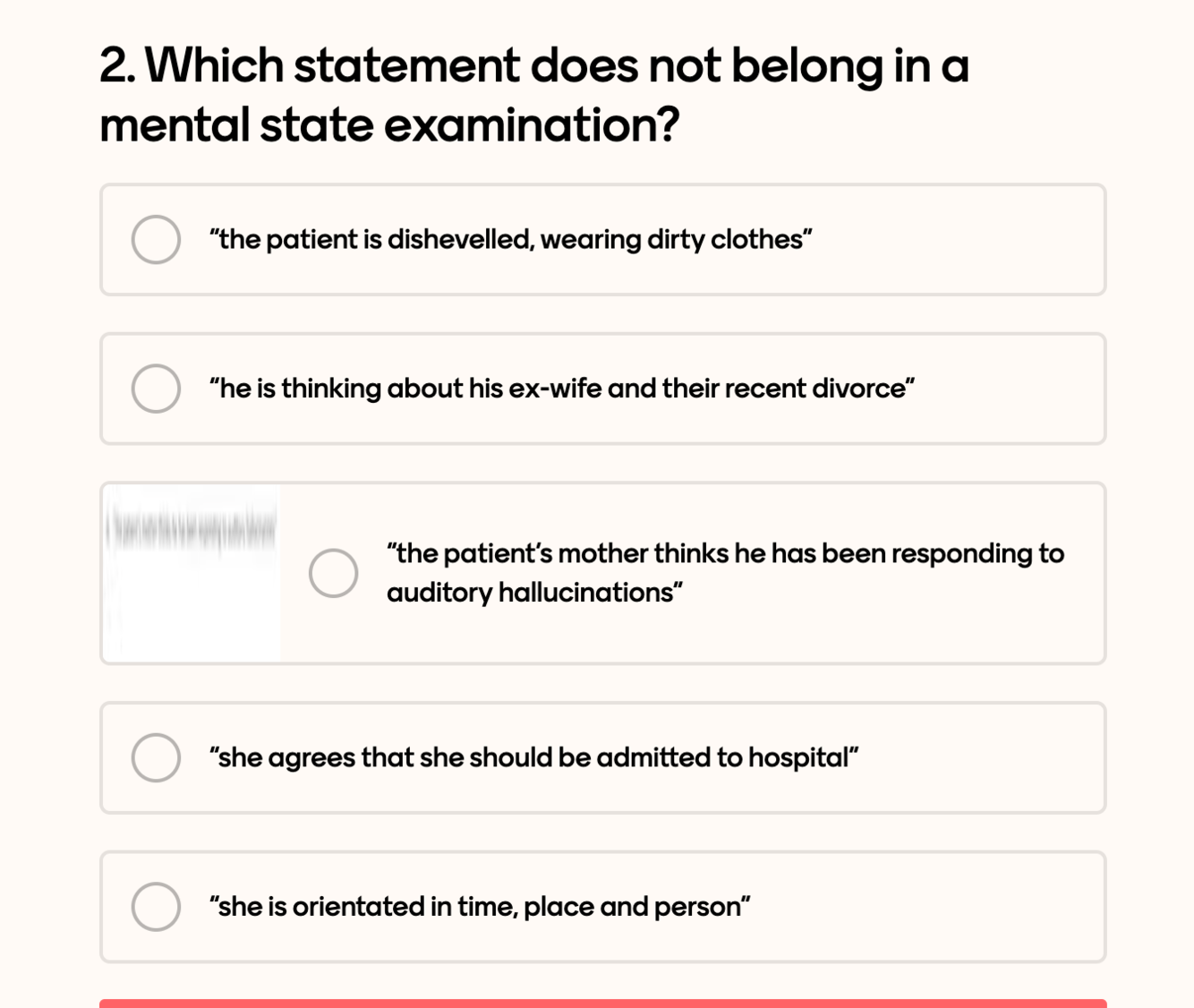 the patients mother thinks he has been responding to auditory hallucinations