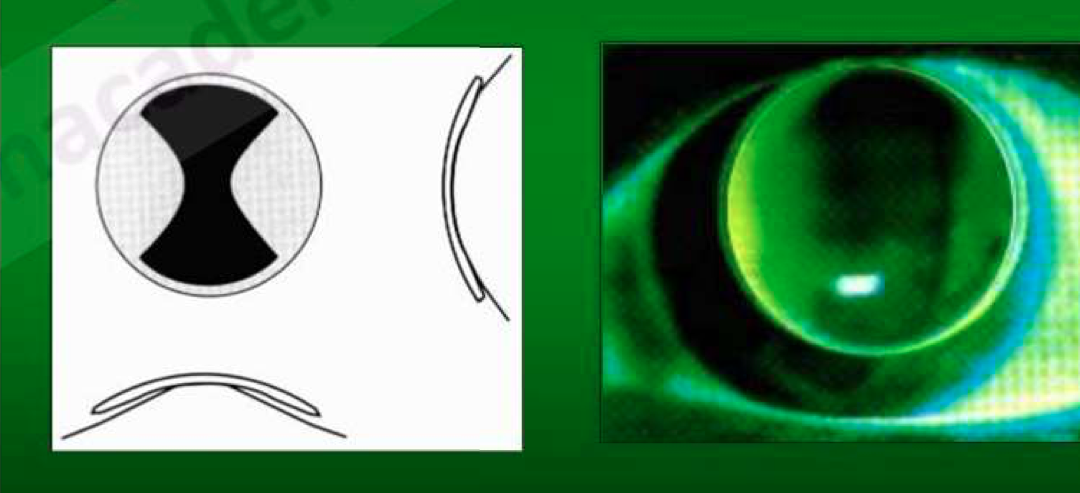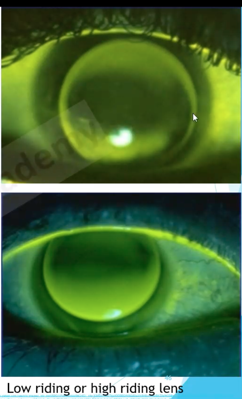 -lens aligns on flatter meridian and tear lens forms along steeper meridian