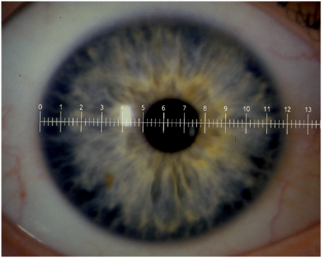 We measure pupil size in ambient lighting (bright light- 100% cubicle light or burton lamp white light)