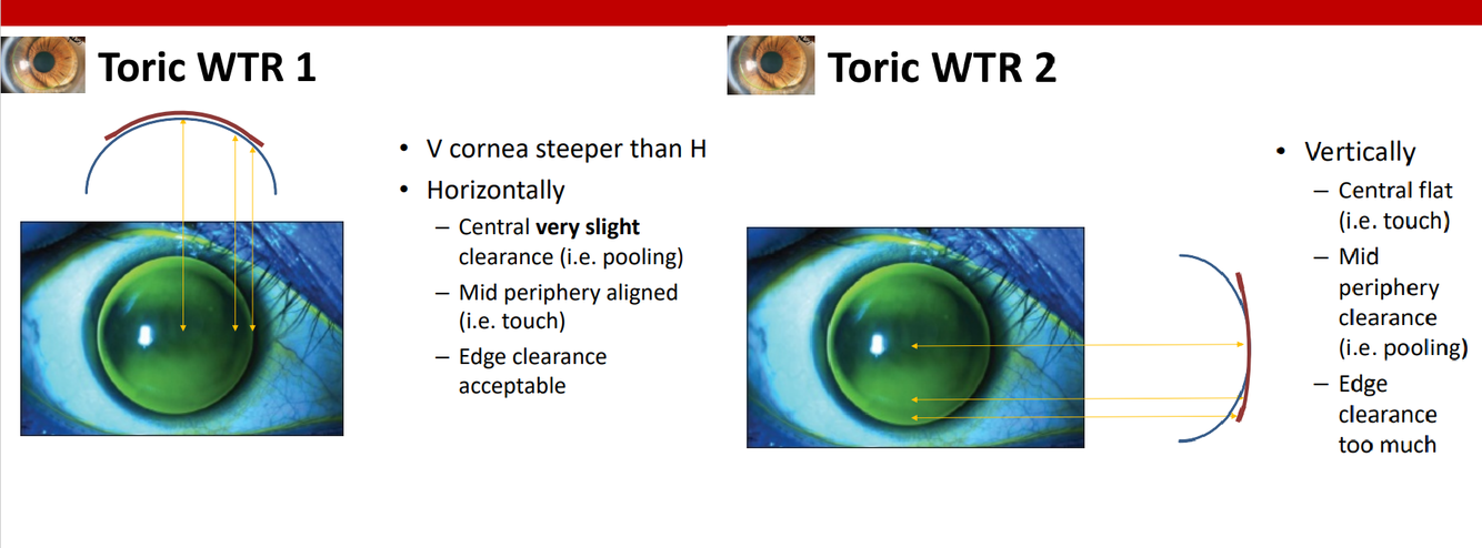 If you are not seeing a symmetrical fluorescein pattern with spherical lenses what can you assume?