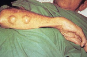rheumatoid nodules found on extensor surfaces or areas of frequent mechanical irritation