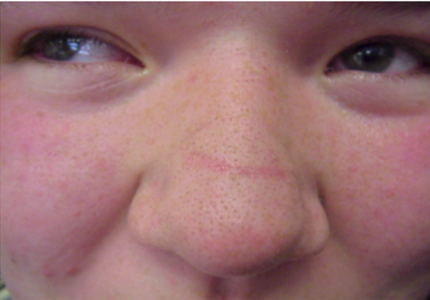 Allergic crease (Indicates repeated itching or rubbing of the nose)