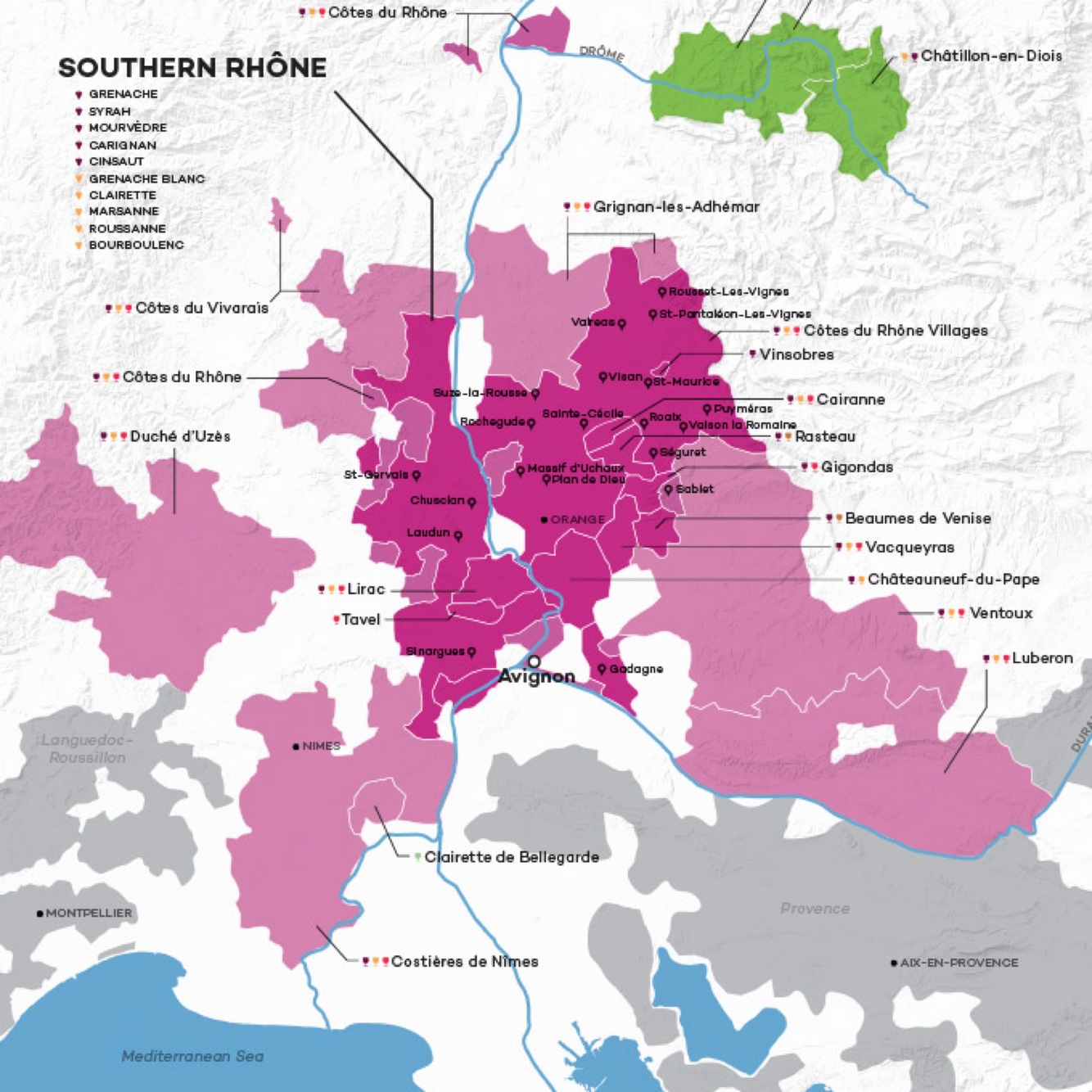 Southern Rhône: Mediterranean, lower rainfall