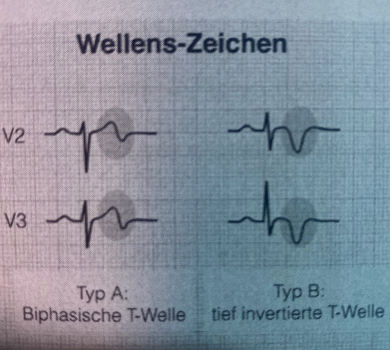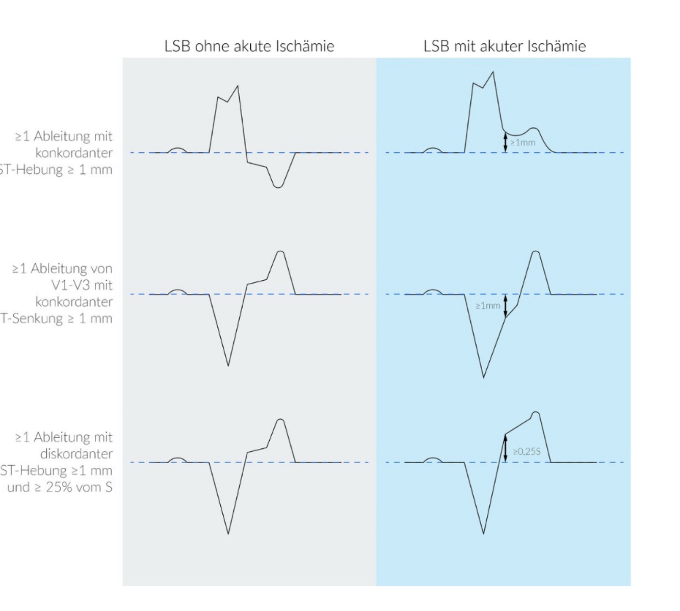 -Diskordante exzessive ST-Hebung ≥25% vom S und ≥1 mm (bzw. ST-Streckenhebung ≥5 mm in Ableitungen mit einem negativen QRS-Komplex)