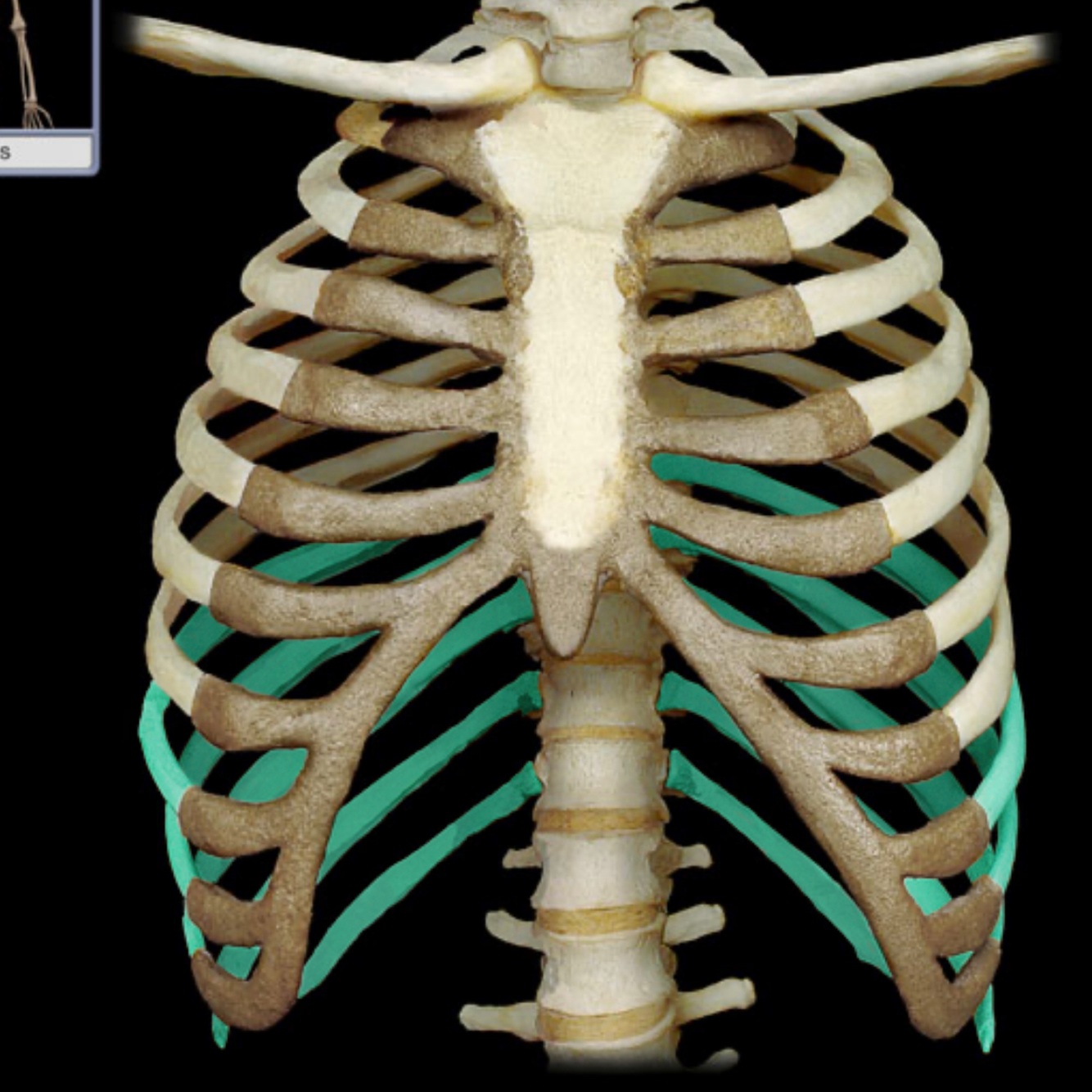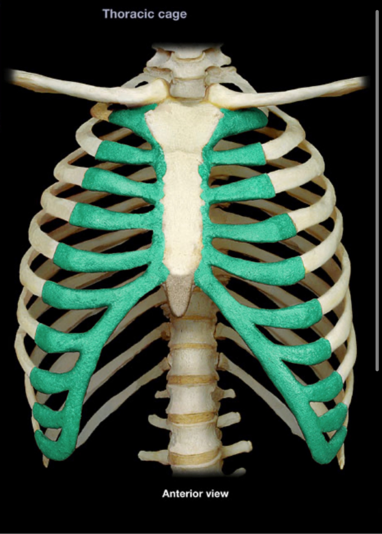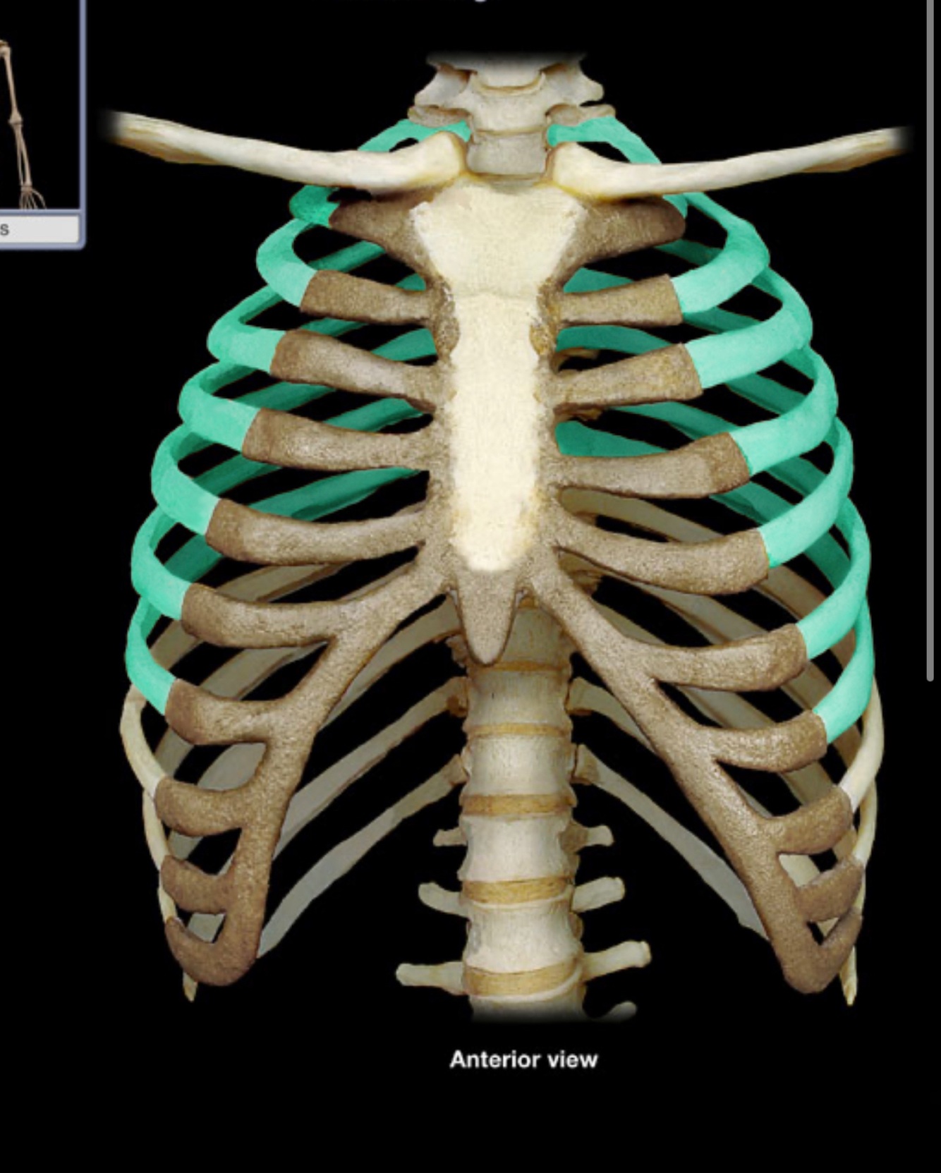 Ribs 1-7Articulate w vertebrae Attached directly to sternum Via costal cartilage